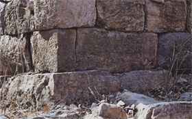 3号马面:位于北城墙C段与西城墙A墙段转折处。东距2号马面69.7米,属有阶台式基础。台基部分砌筑所用石材较大,厚重,台基正面外侧较高,略向城墙一侧倾斜。台基正面宽8.8米、高1.6米、侧面长10.4米,墙面每米内收0.08米。马面在台基上的正面内收1.1、两侧内收0.8米。正面宽6.6米、侧边长9.3米,墙面石残存10层,高2.4米,每米内收0.09米。外折角部分用方整石砌筑。