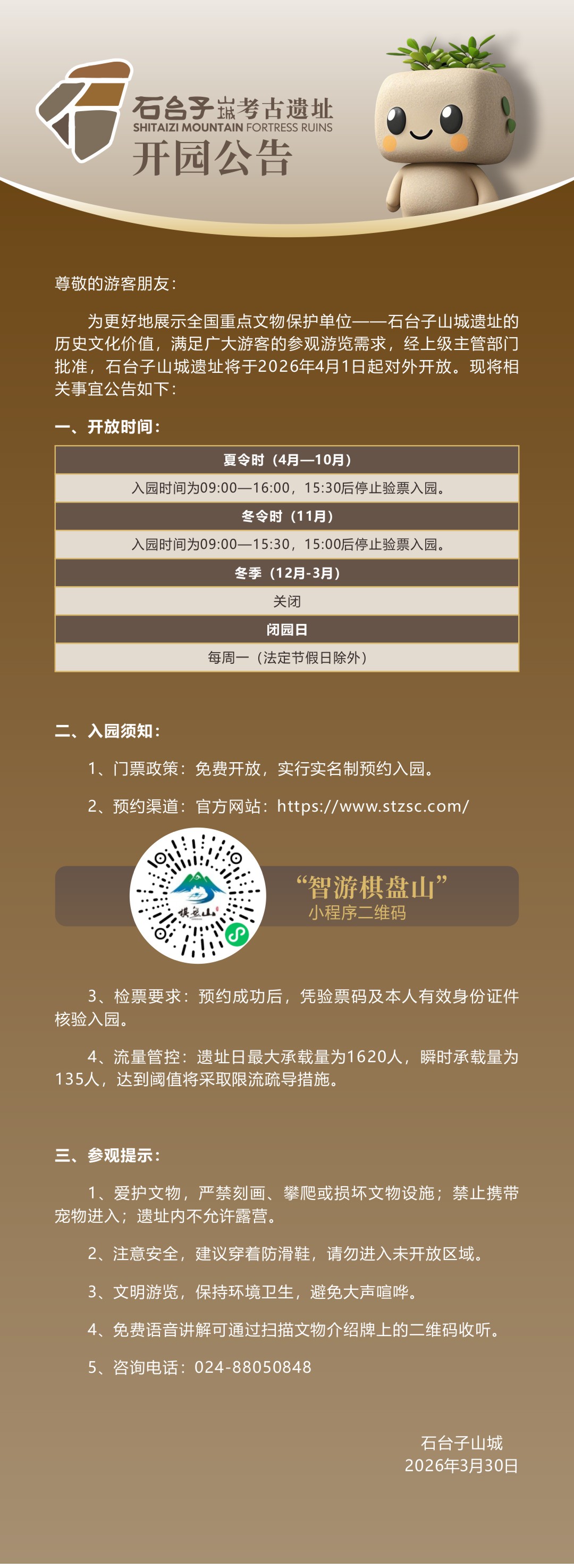 石台子山城开放区域参观承载量公告